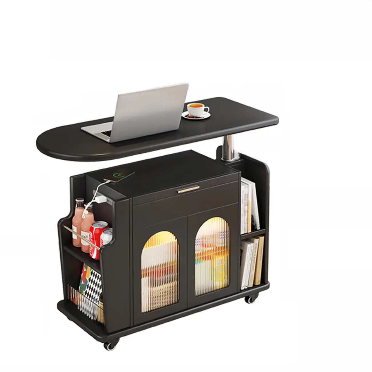 Adjustable White Wood Multi-Functional Side Table with Wheels