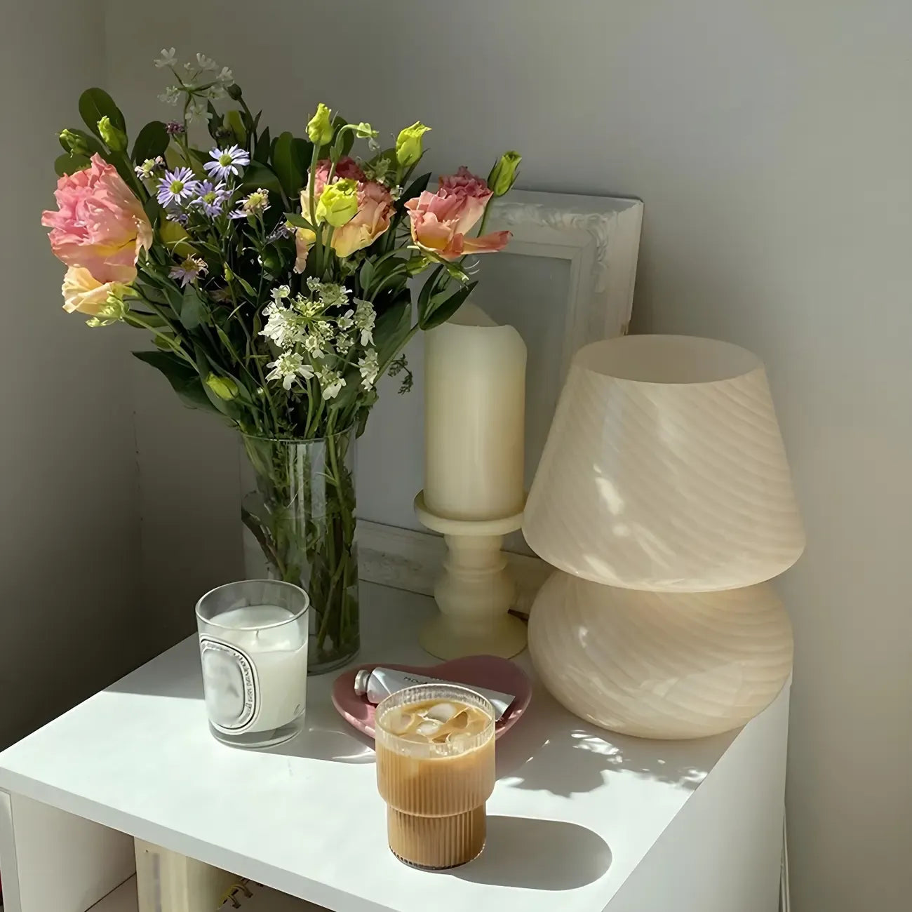 Compact Glass Table Lamp with Spiral Pattern for Residential