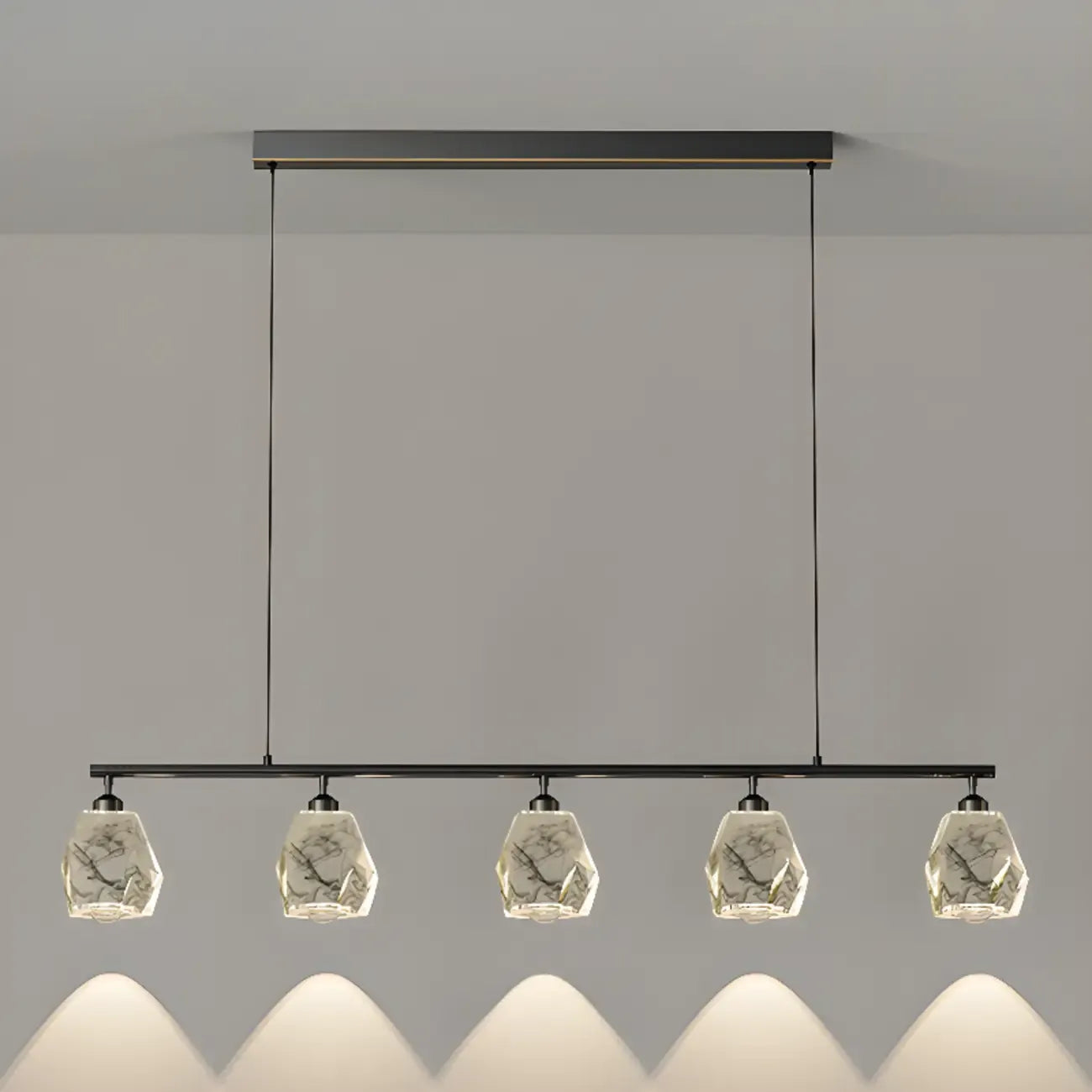 Geometric Gold Crystal Down Island Pendant Light