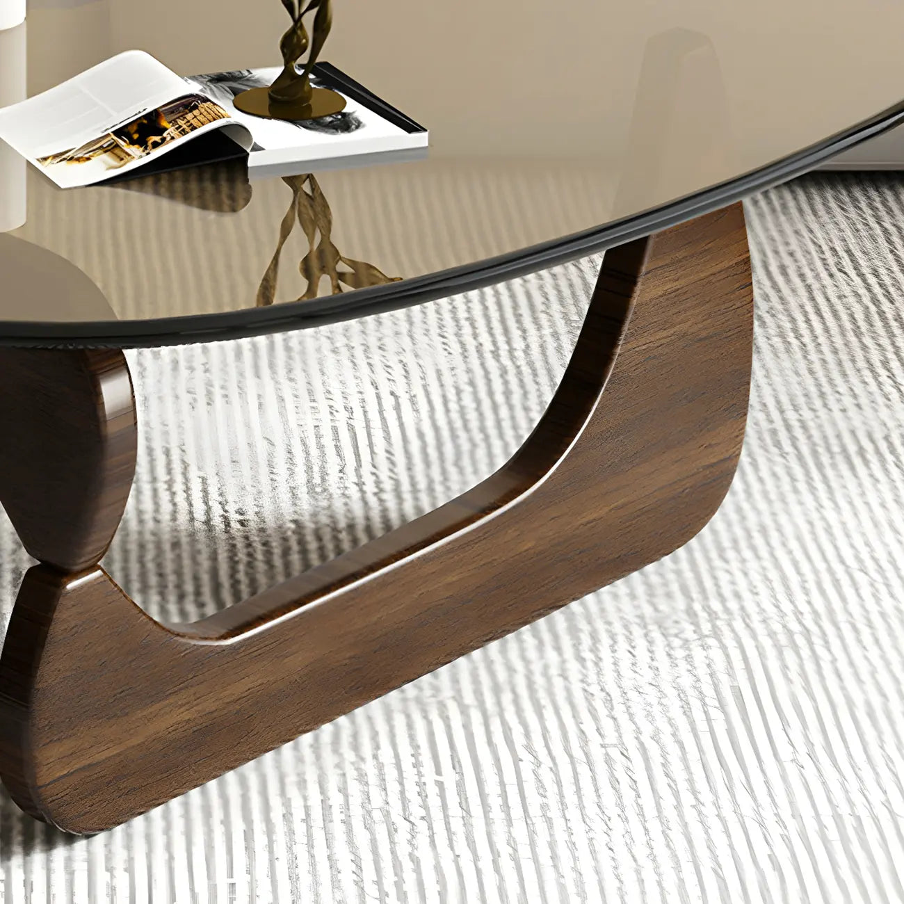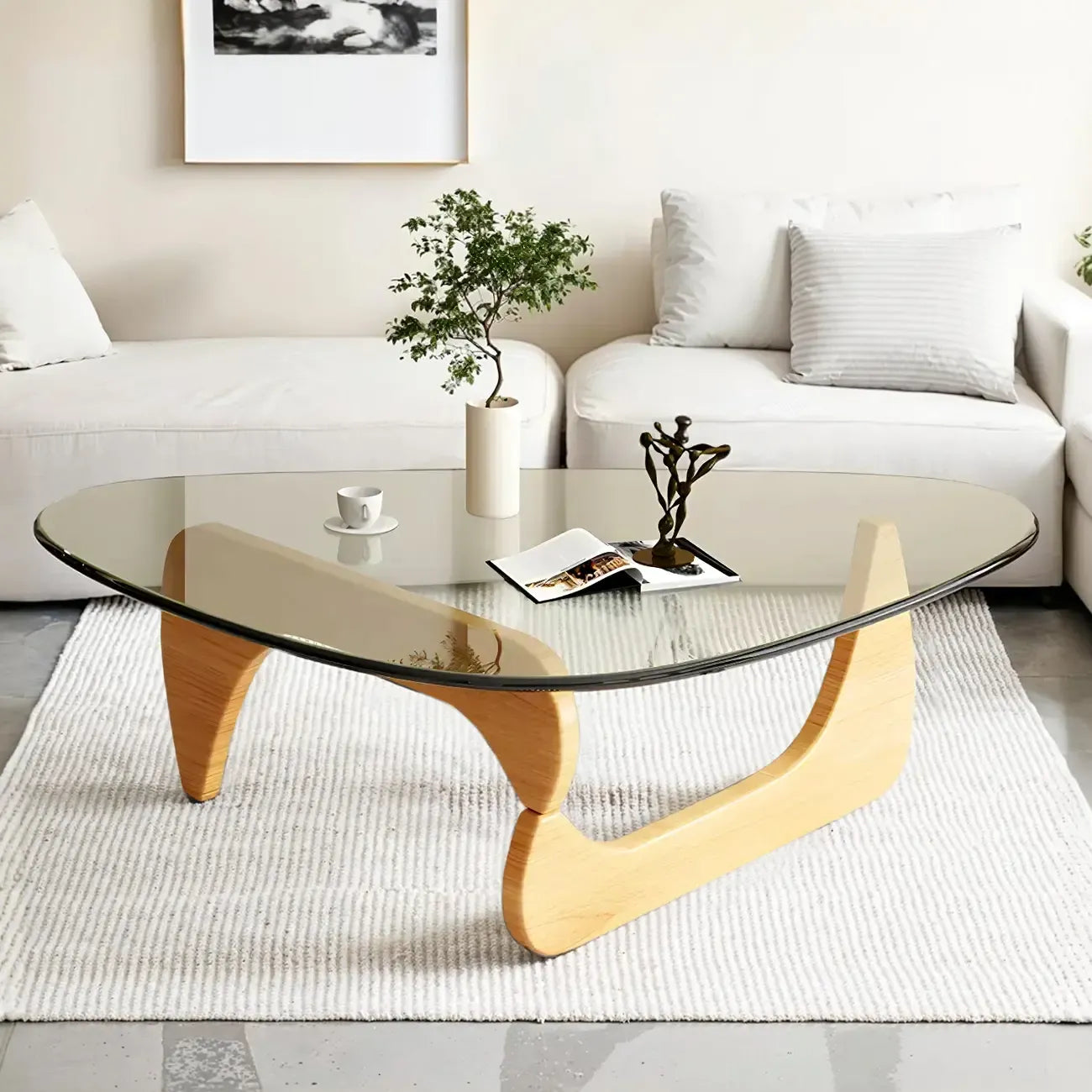 Modern Triangle Glass Coffee Table Wooden Base