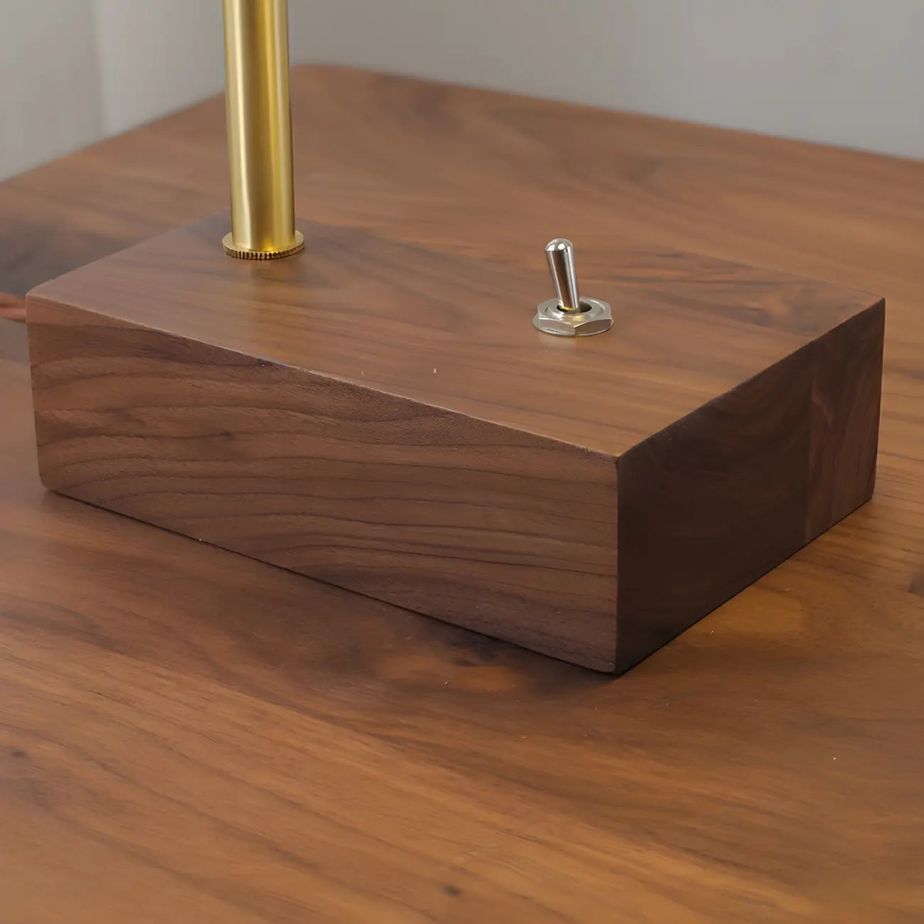 Retro Brown Gold Glass Wood Base Arched Table Lamp