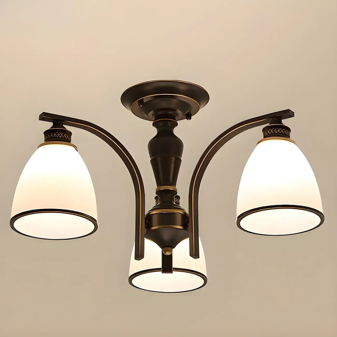 Traditional Black Down Bell Frosted Glass Semi Flush Mount Light